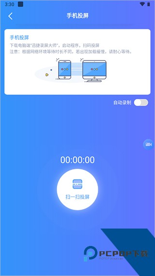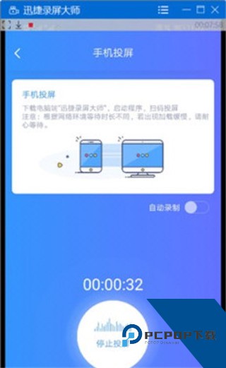 打开电脑客户端二维码,使用迅捷录屏大师APP点击投屏扫一扫,轻松将手机画面分享到电脑,简单好用,容易上手,并支持自动录屏