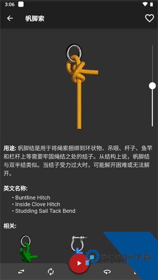 4、进入之后就可以看到3D动态视频打结方式,大家就可以按照视频学习操作,并且还拥有用途详细情况。