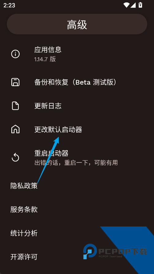 4、选择更改默认启动器