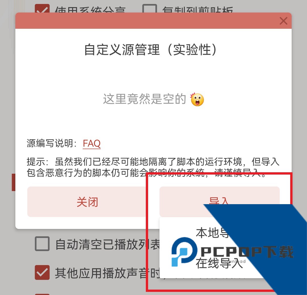 4、点击导入,有本地导入和在线导入。本地导入可以选择手机本地的音源文件,在线导入需要输入音源链接。