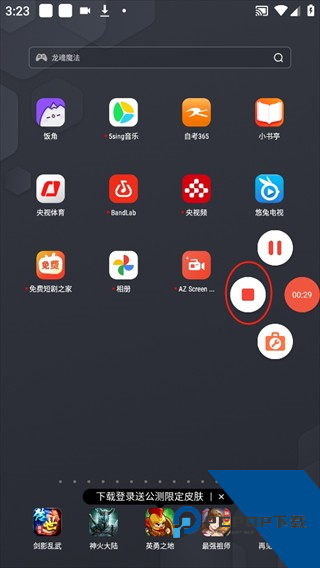 通知栏下拉式菜单一键单击启动、停止录制/录制时摇一摇手机停止录影。