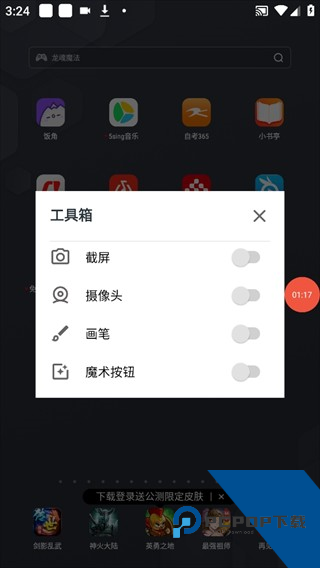 7、此外在录屏的时候点击图标下方的工具箱图标,还可以使用截图、开启摄像头、画笔等功能