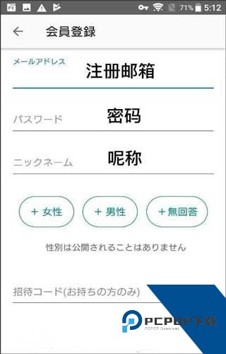 从上而下分别是:邮箱地址、密码、呢称,选择性别。无回答意味着保密。