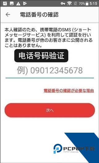 4、然后填入手机号码(仅090/080/070开头可验证)