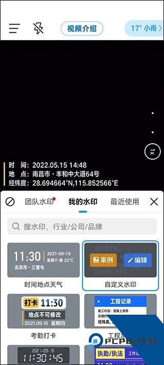 1、打开软件,点击【水印】按钮,找到【工程记录水印】或者【自定义水印】,点击编辑;
