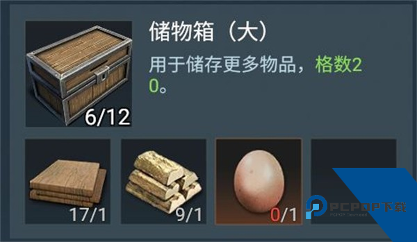 但营地内可放置的箱子总数有限,如果我们想存放更多的物品,最简单的方法就是将初始10格储物空间的储物箱(小)替换为初始20格的储物箱(大)啦!