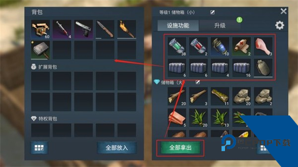 我们可以进入原有箱子,点击全部拿出,快速将箱子物品取至背包。