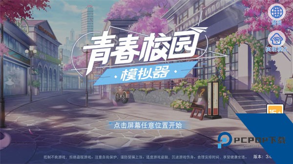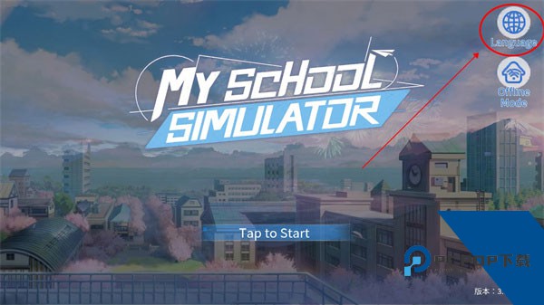 1、在青春校园模拟器登录界面点击右上角的地球图标;