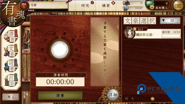 这里就是潜书的地方,请允许我叫他赌书哈哈,初始两个坑位,可以通过氪金增加到4个个坑位,点击潜书之后会让你选择潜书的人,之前讲过的,参与赌书的成员不能设为近侍,近侍也不能赌书