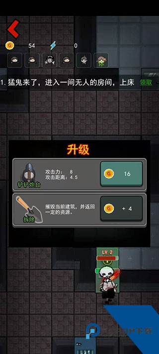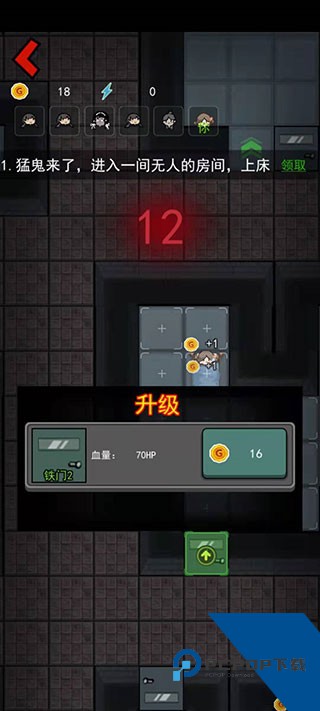 2、游戏里面鬼是根据攻击次数来升级的,前期要一直打他,不然就会升级很慢。比不要强硬的拼血量,不然他们吸血后升级非常快,赶快将鬼打跑,不能让鬼一直来攻击门。
