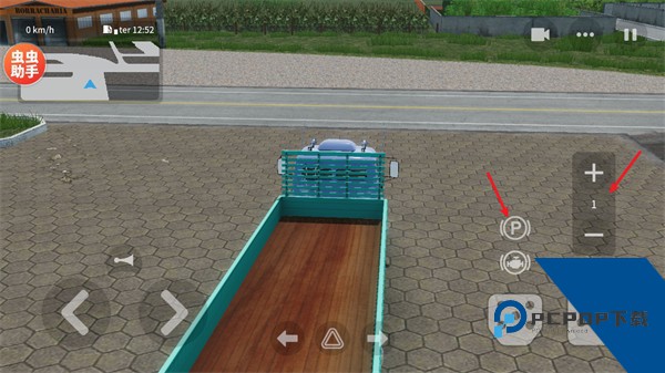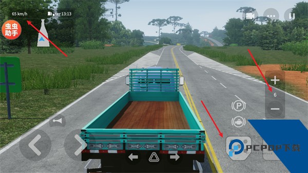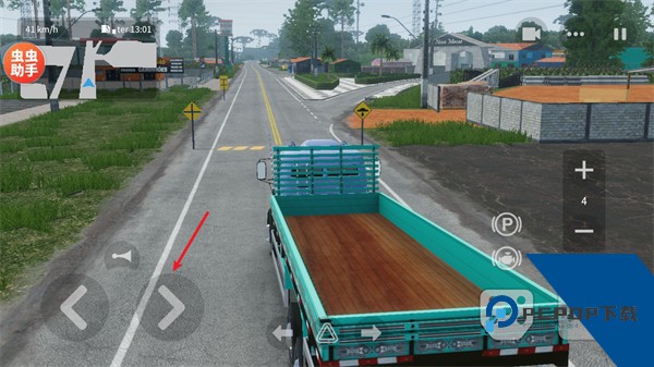 4、左侧的方向键可以控制卡车的转向,根据道路情况合理调整行驶方向。