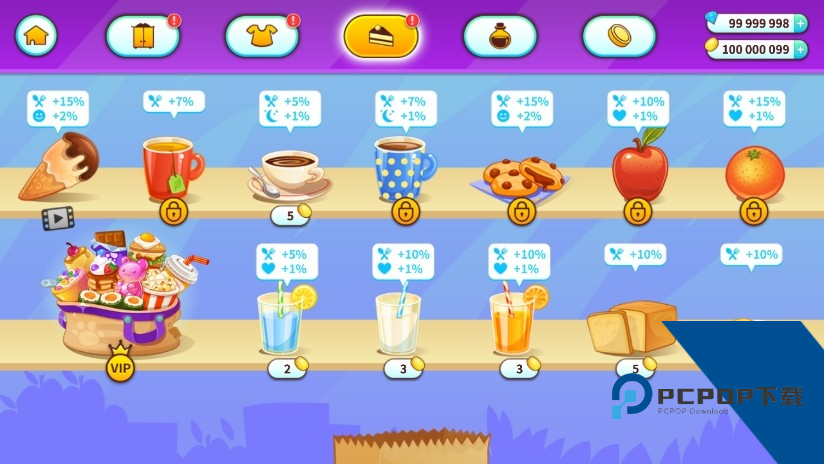 5、打开冰箱,点击上面的蛋糕图标,就可以进行食材的选购;