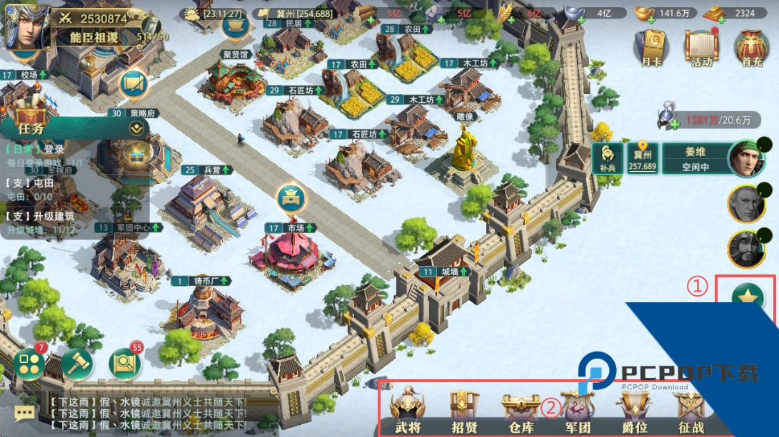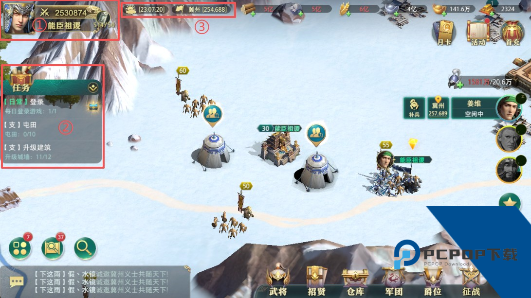 另外,演义里面的资源(招贤令)非常多,一定要拿,但不急于拿。