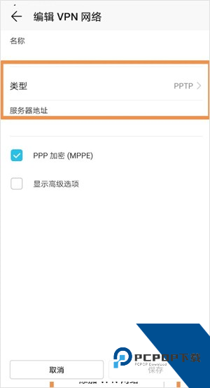 5、点击输入V名称(此名称可自己随便定义),填写V服务器地址(可联系任意游客服),取消启用加密选项,DNS搜索范围可不填,也可选填如“8.8.8.8”点击“保存;