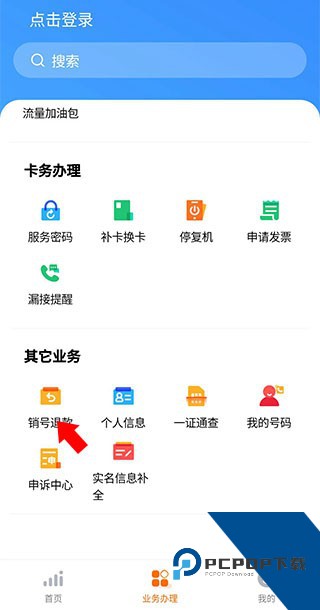 2、来到业务办理界面后,往下滑至底部,点击销号退款