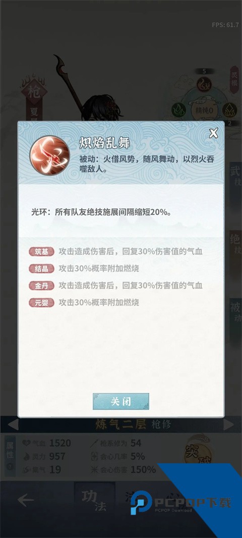 前期如果没有使用任何资源,这时候可以把所有资源投入到火身上。如果资源不足,追求快速通关,可以打坐,精力换取灵气、修为快速把火提升到筑基一层,灵根喂到精纯1,然后回去做青岚山任务,宗门贡献换取一颗筑基丹。剩下的资源全部投入到水剑身上