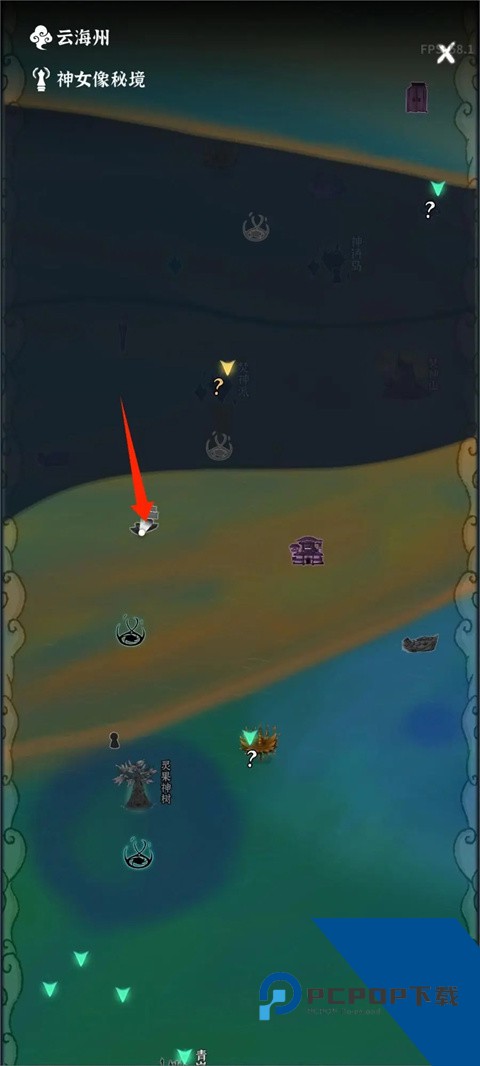 神女像秘境出来后,先别急着做下一步任务地图右下角巨魔巢穴左侧有一个宝箱,先去开了,再进行下一步任务