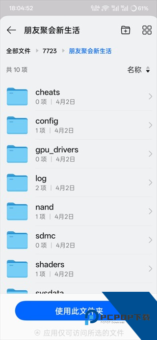 1、在本页面下载的为附带朋友聚会新生活的Citra模拟器,首先进入后需要授予内存权限,然后下一步,在选择用户文件夹点击选择进入文件夹界面,任意选择一个文件夹即可,这是保存游戏数据用的。