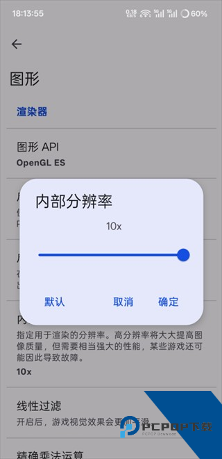 3、在图形设置中将内部分辨率调整为10x即可。