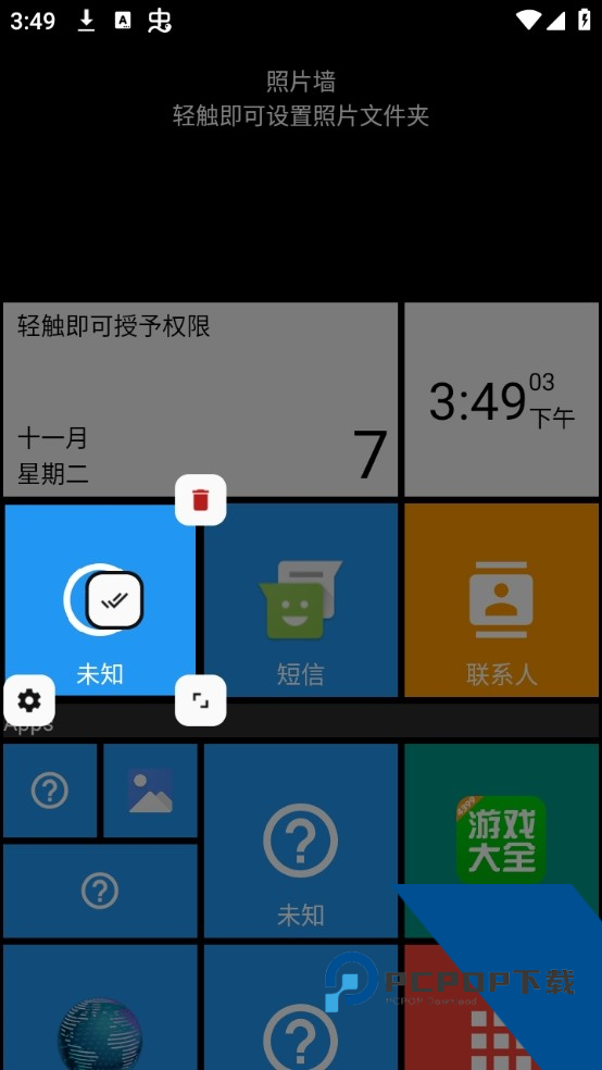 4、长按画面中的某一个磁贴方块,可以对其进行编辑或者移动;