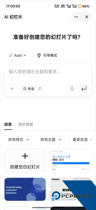 2、AI幻灯片界面下方可以选择模板主题。