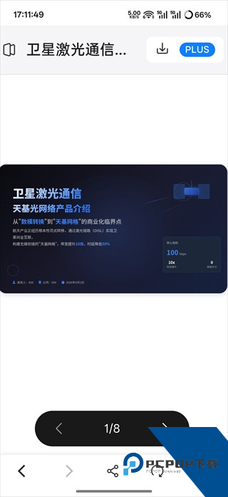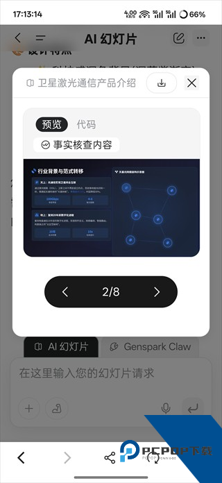 5、比如我发送了一段卫星激光通信产品的资料,等待一段时间后Genspark AI会生成一份PPT可以点击进入查看。