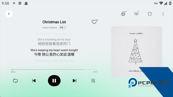 3、可自动下载匹配歌词。在联网情况下,你下载的歌曲即使没有歌词,软件也会提示你下载,并匹配,这一功能十分实用,其他的播放界面可有多项选择等功能。