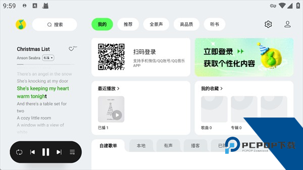 5、此外,QQ音乐车机版最新版支持手机微信/QQ账号/QQ音乐APP扫码登录同步手机资产