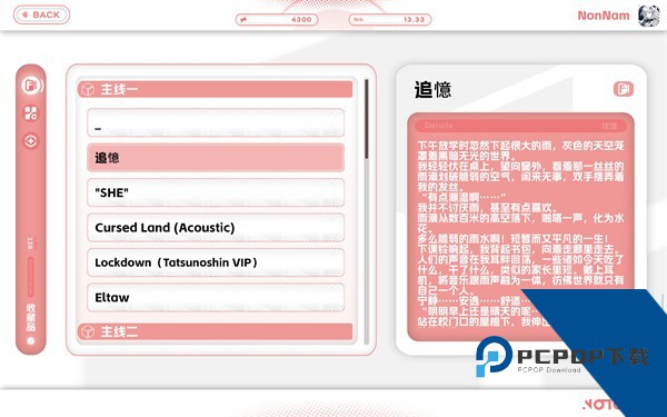 2.多难度设计:游戏中曲目有三个不同难度的谱面:“EZ”(Easy)、“SY”(Story)、“EX”(Extra),以及特定曲目的“EZ+”难度,难度等级从1到10不等。