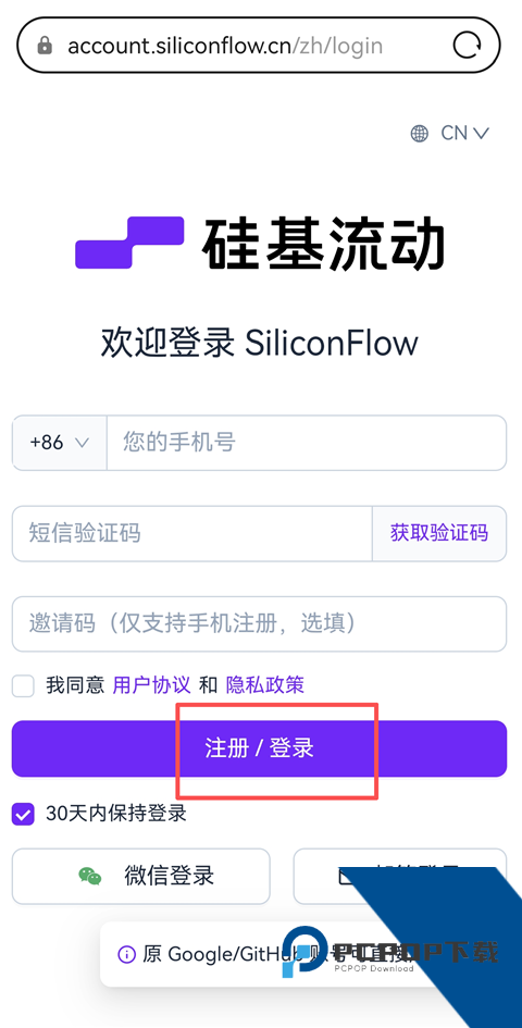 1、在手机浏览器中搜索【硅基流动统一平台】,进行注册登录,可以使用手机号直接登录。
