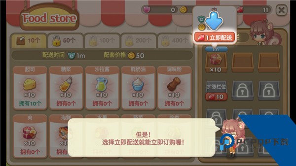9、完成购买后,食材会在一段时间后送达,你也可以选择花费钻石进行加速配送。