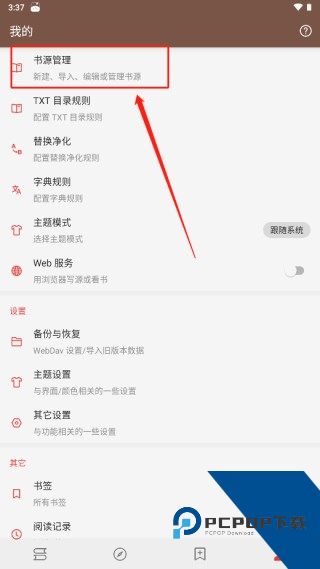 2、点击“书源管理”。