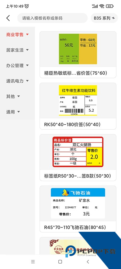 2、点开模板、有商业零售、居家生活、办公管理、通讯电力等多种类型的模板下载;