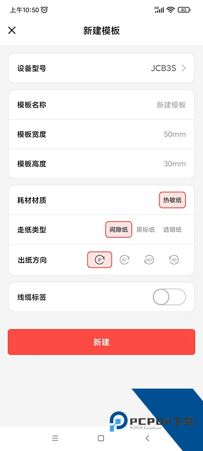 3、点击新建模板、用户可以设置设备型号、模板名称、模板高度等;