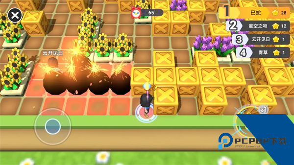 放置炸弹,在周围的箱子中找到能让我们变的更加强大的道具,小心身边的情况,炸弹可以爆破的可不仅仅是箱子。