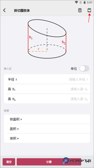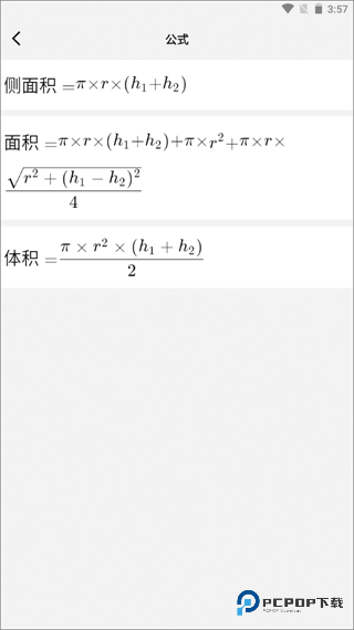 1、几何计算:内置多种几何模型,包括三角形、圆弧、椭圆、圆台、圆锥体等,全面支持平面几何与立体几何计算。用户可通过输入已知数据,快速求解未知量,如面积、体积、长度、角度等,满足各类几何计算需求。
