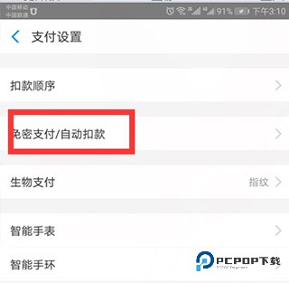 4、进入支付设置后,找到“免密支付/自动扣款”一项,点击进入。