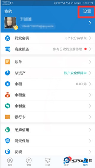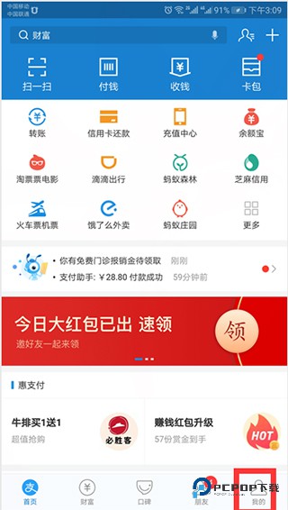 2、进入支付宝后,找到右下角的“我的”一项,点击进入。