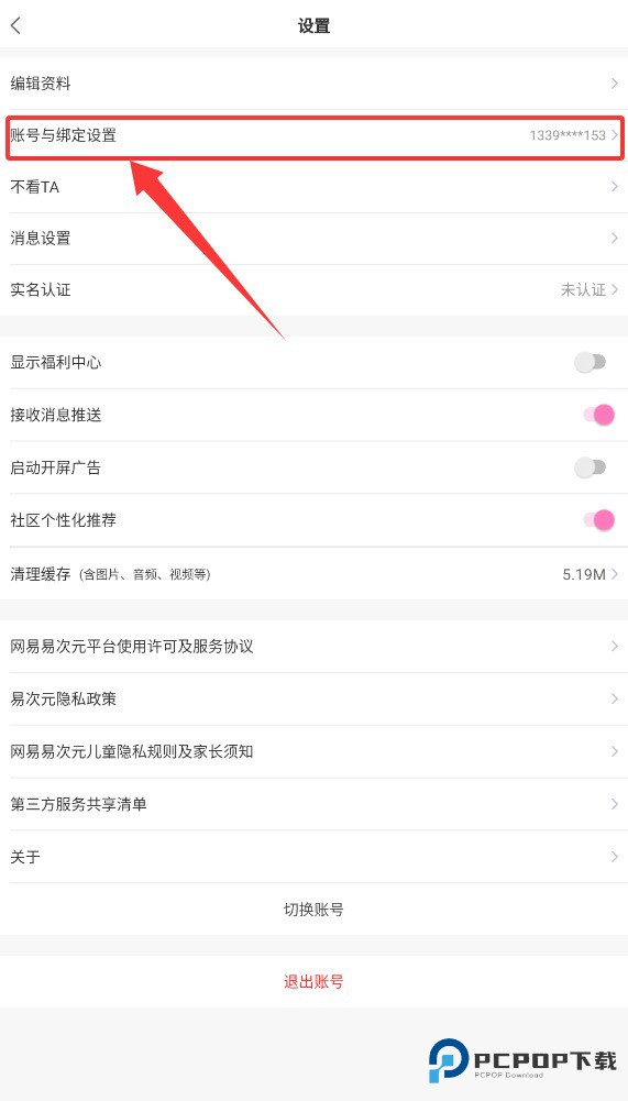 2、在设置选项中选择"账号与绑定设置",进入后找到并点击手机号选项进行账号安全设置。