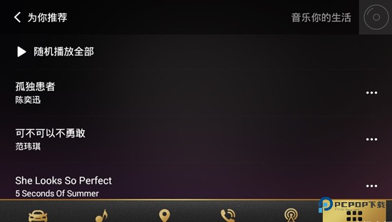1、在本站下载安装QQ音乐车机版,可以看到当前播放音乐、最近播放、本地音乐、为你推荐、个性电台和我的音乐六大版块。再加上左上方的设置,和右上方的搜索,这样,所有的功能在首页清晰呈现;