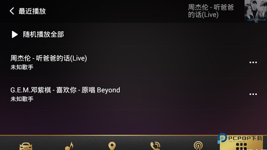 4、首页—最近播放,是最近播放过的音乐目录,当您想再继续听这些音乐时,这个列表就显得非常便捷;