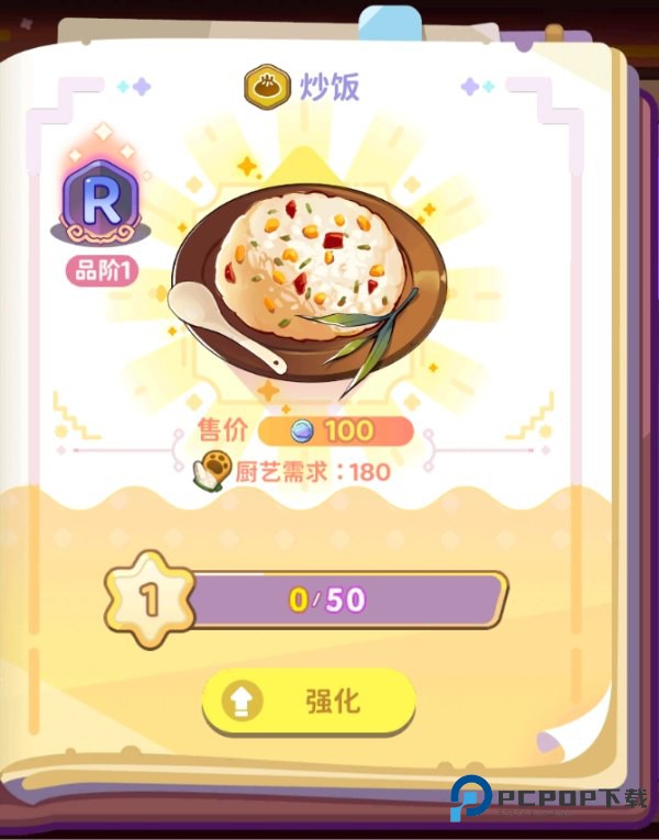 2、菜品强化可以通过普通食材来提升菜品的等级和售价。