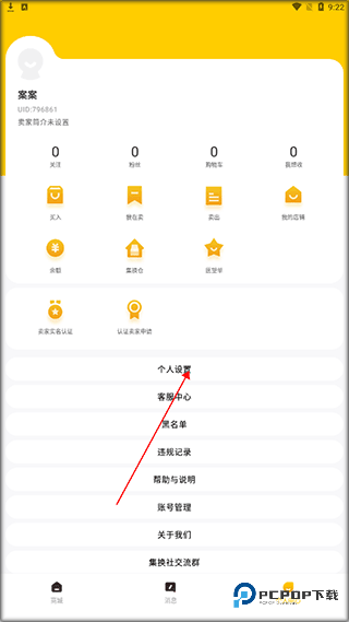 进入个人中心,找到“关注”选项,即可通过用户昵称或UID精准搜索卖家。