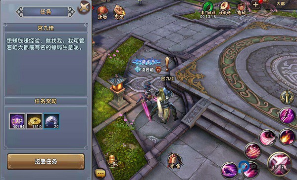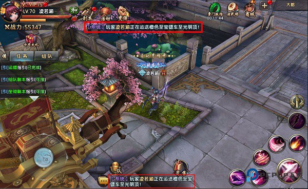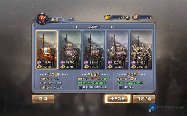 玩家在30级时可开启运镖系统,在大都找到NPC“宫九佳”即可开启任务。每人每天可完成3次运镖任务。每次完成后依据镖车品质不同,可以获得大量的铜币和经验奖励。每日活动获得的“行镖旗”此时就可以派上大用场了,可以刷新镖车品质,以便获得更高的利润。在这里强烈建议大家每次都刷新到黄金品质镖车再进行押运。最低等的普通镖车和最高档的橙色品质镖车所获得的报酬差距可不是一般的大呢。