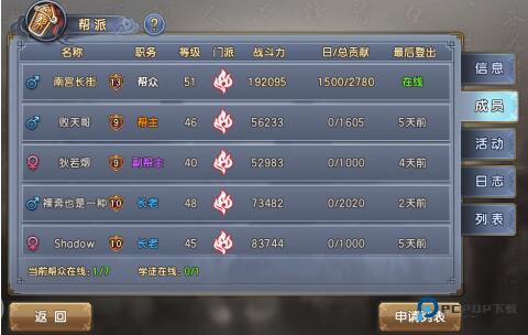 在帮会初建之时,帮会内玩家过少,所以需要帮主及帮内成员努力寻找未入帮会的大侠加入到本派当中,同时及时处理帮会列表中的申请信息,迅速壮大帮派。