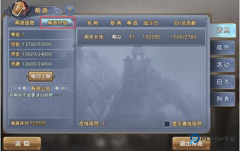 3)帮派等级越高,帮派建筑的属性越高,给予帮会更多的属性加成