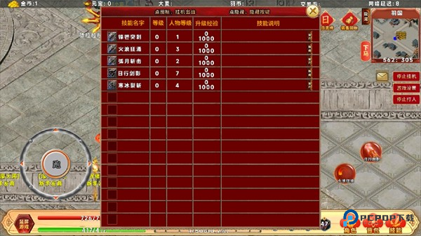 3、玩家可以在右下角设置技能,选择适合挂机的装备技能。