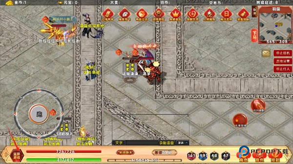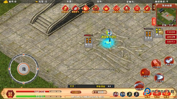 2、右下角的四个魔瓶分别用于回血、回蓝、随机传送和返回城镇。