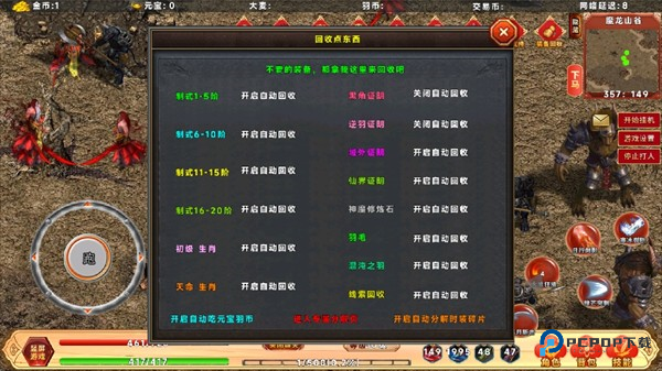 5、多余的装备可以通过回收系统换取金币和元宝。