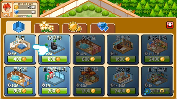 1、建立各种设施。无论你建立哪种设施,客人只要使用了都会产生使用费!